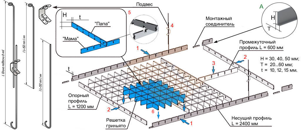 алюминиевых решетчатых подвесных потолков “Грильято”